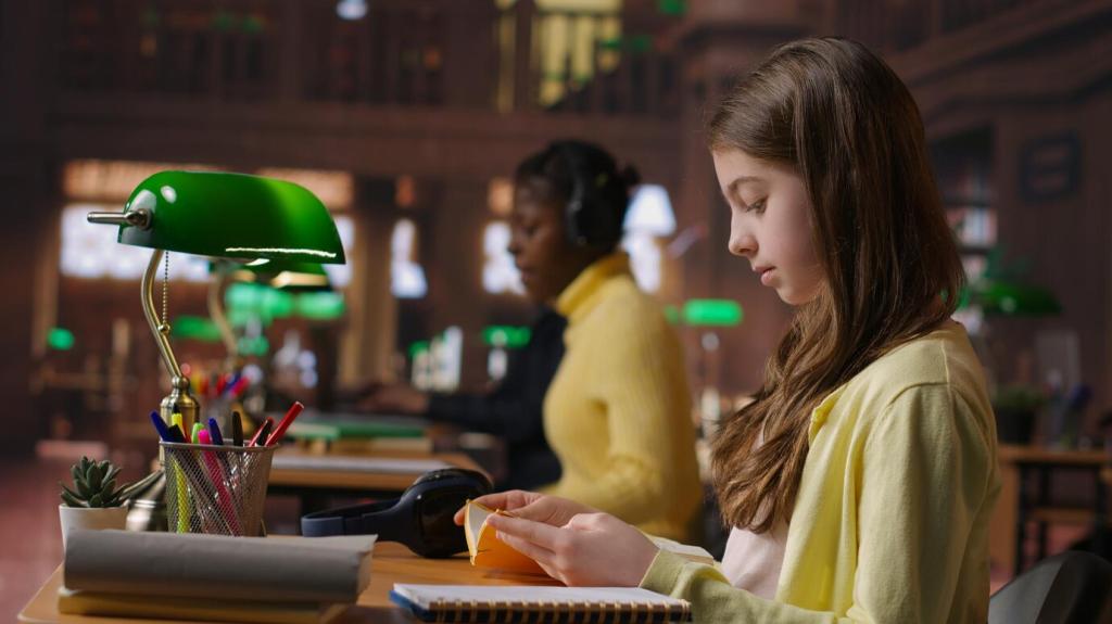 Planen Sie feste Lernblöcke, schalten Sie Benachrichtigungen aus und beenden Sie Einheiten bewusst. Ein kurzer Abschluss-Notizzettel sichert Fortschritte. Abonnieren Sie unseren Newsletter für wöchentliche Fokus-Impulse und Mikroaufgaben.